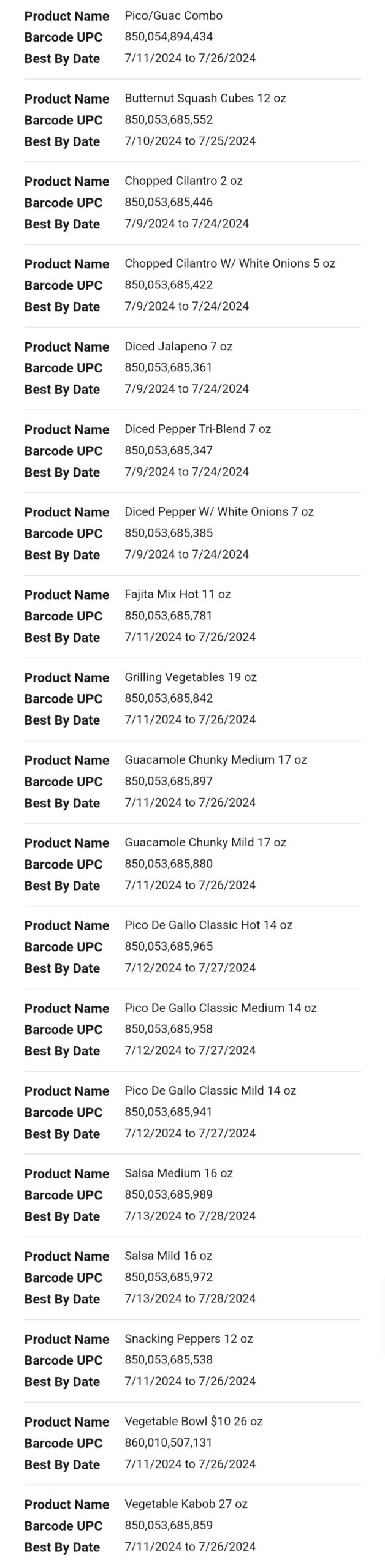 يُذكر أنه تم توزيع المنتجات المسترجعة في متاجر Kroger للبيع بالتجزئة الموجودة في إلينوي وإنديانا وميشيغان وميسوري وأوهايو.