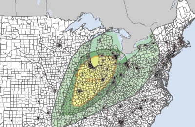 وفقاً للهيئة ستكون المخاطر أقل ليلة الاثنين حتى صباح الثلاثاء، ولكنها ستزداد في بعض المناطق من ليلة الثلاثاء إلى صباح الأربعاء، وقد تم إدراج Ann Arbor و Kalamazoo و Monroe في فئة المخاطر من المستوى الثاني.