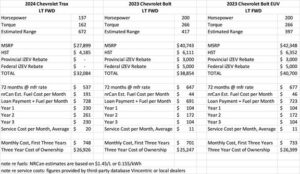 تعد Bolt أخفض من سعر نظيرها Trax في صالة العرض بحوالي 50 دولار شهرياً على مدار السنوات الثلاث الأولى ، ويرجع الفضل في ذلك في المقام الأول إلى تكاليف الطاقة والتخفيضات الحكومية. إلا أن تكاليف الصيانة المقدرة لـ Trax التي تعمل بالبنزين ليست مكلفة نوعاً ما.
